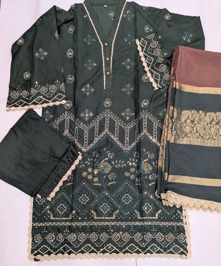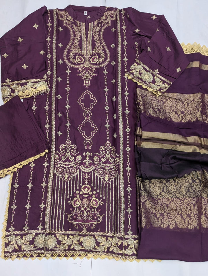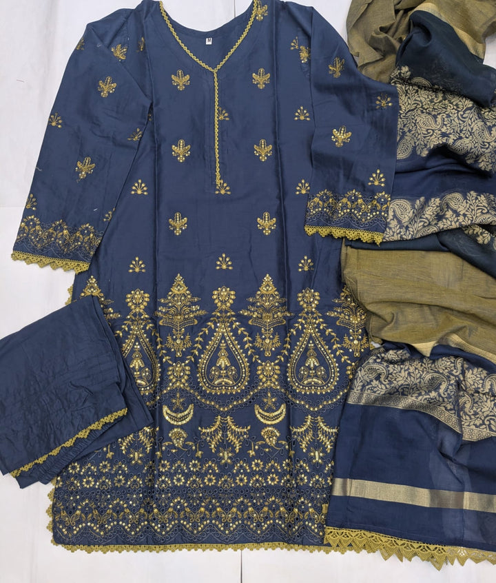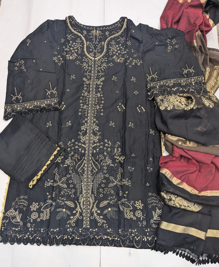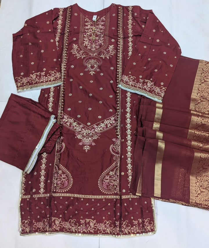 3pc Fancy party Wear Fully Embroidery Price of 6 Dress ( 1 Set )
