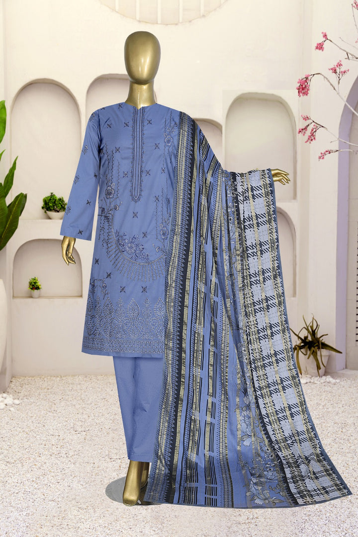 Sale offer 3pc Embroidery Sapphire Cotton Price of 3 Dress ( 1 Set )